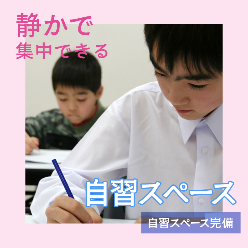 授業だけでなく、自学の質を高めるために、自習スペースが用意してあります。静かで集中できる環境の中、授業で学んだことを復習したり、宿題に取り組んだりすることができます。自宅ではなかなか勉強に集中できない生徒も、塾の自習スペースを活用することで、学習習慣をしっかりと身につけることができます。